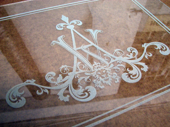 This was a very special job for a lovely chap, redacted, for the purposes of redacted he'd designed this highly detailed monogram to go on a sheet of 4mm glass on the top of a wooden box he'd hand-made, in which he'd redacted a redacted he'd redacted.
