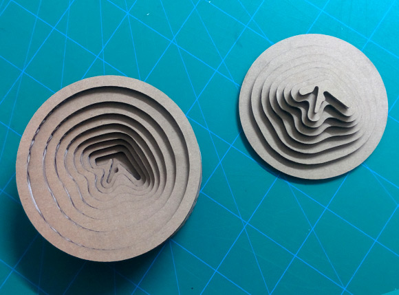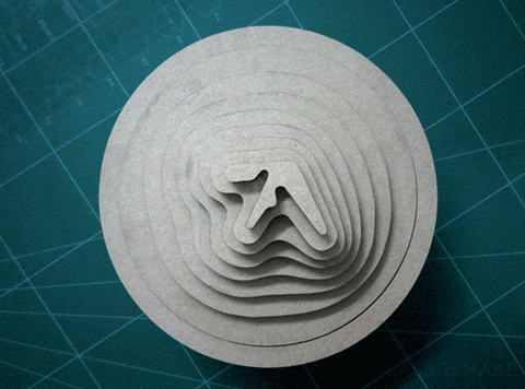 We wanted to test a different glue and alignment process for bonding corrugated cardboard for a potential project... and also wanted to play around with the modified logo-form that's being used to market a new release by Aphex Twin.